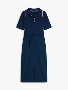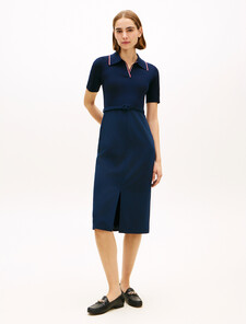 Tailored for Asia silhouettes, this mixed media dress features signature tapes on the collar and placket for a branded touch, while a tonal belt cinches the waist for subtle definition.