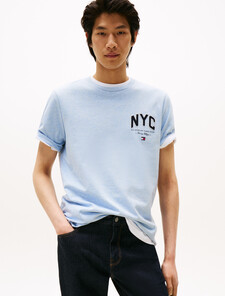 The cotton t-shirt features NYC embroidery and signature Tommy Hilfiger branding nodding to American heritage style.