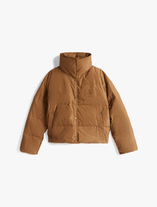 This puffer jacket keeps you warm and dry on drizzly days with its thick down filling and water-repellent finish.