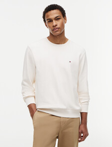 Signature tapes along the sleeves add a sporty feel to this heavyweight pure cotton sweatshirt, finished with ribbed collar, cuffs and hem and a Tommy flag embroidery at chest.