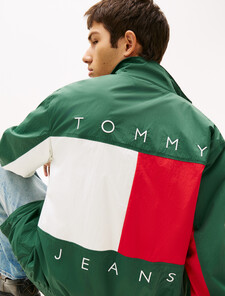 This new twist on the classic windbreaker fuses a retro-informed silhouette with contemporary details, including a water-repellent finish and oversized back logo.