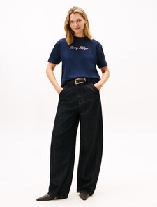 This relaxed-fit crew-neck T-shirt with signature embroidery features eye-catching gold-tone button detail on the shoulder, enhancing an everyday look.