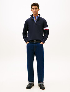Crafted from stretch cotton piqué, this sweatshirt features a half-zip collar that evokes a heritage sporty vibe, highlighted by the embossed logo and signature stripe insert on the sleeve.
