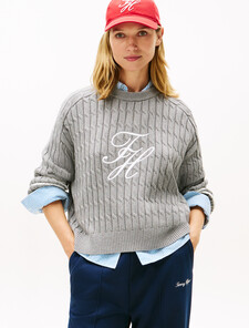 This cable knit jumper in pure combed cotton features bold script logo embroidery on the front for a signature finish.