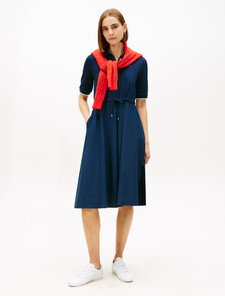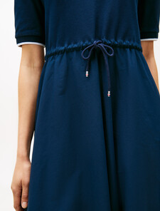 Crafted from a stretch cotton blend, this flattering midi-length polo dress is cinched at the waist with a drawstring for an elongating effect.