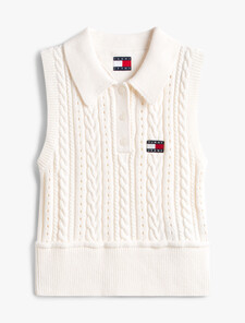 Bring a preppy touch to your knitwear with this slim-fitting sleeveless jumper, featuring a cable knit design and a classic polo collar.