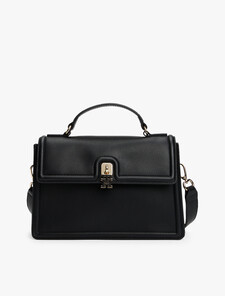 Shimmering gold-tone hardware on the turn lock adds a touch of glamour to this pebble-grain satchel with a removable crossbody strap.