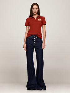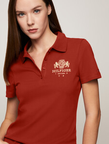 A timeless icon with a branded touch, this polo shirt is cut from stretch cotton piqué to a flattering slim fit. It features a textured Tommy Crest embroidery on the chest for a sophisticated finish.