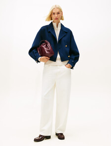 Refine your outerwear collection with this timeless peacoat, crafted from a double-faced wool blend and finished with luxe gold-tone buttons.