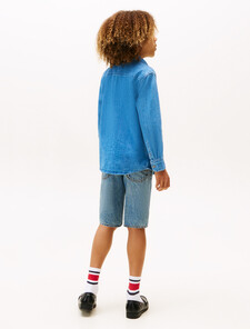 這款經典牛仔襯衫以純棉製成,淺藍色水洗效果別具率性的格調,是百搭的衣櫥必備單品。