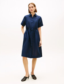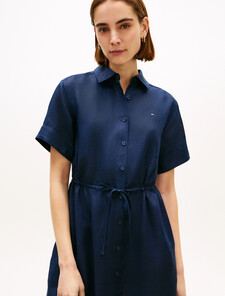 這款襯衫連身裙以純亞麻製成,展現迷人的修長廓形,並以修腰設計突顯曲線,能為任何造型注入柔美格調。