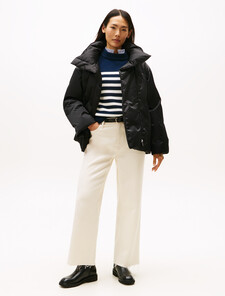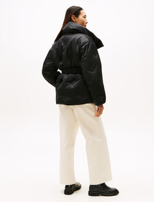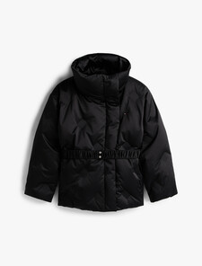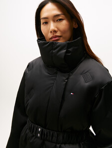 蓬鬆豐盈的外套,搭配抽褶腰帶和熱封旗幟標誌,彰顯品牌格調。