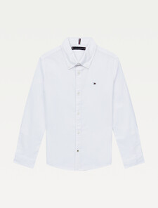 這款彈力棉質牛津襯衫彰顯Tommy Hilfiger的標誌性美學,搭配鈕扣領,並綴有Tommy旗幟標誌刺繡。