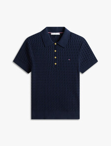 這款簡潔的Polo衫展現優雅的精細絞花針織設計,能完美配襯任何穿搭。