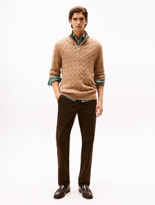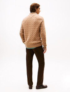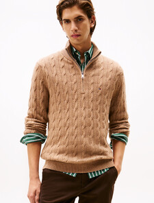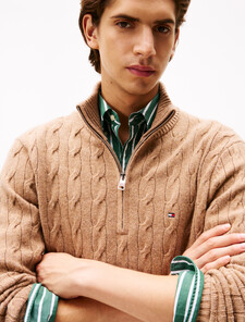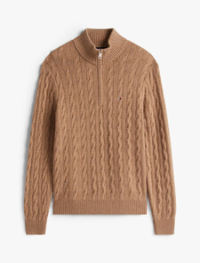 這款針織毛衣以純羔羊毛製作,搭配實用的四分拉鍊設計,絞花針織紋理別具經典格調,是時尚百搭之作。