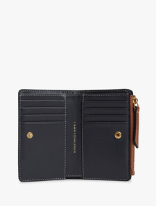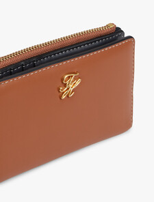 這款滑面皮革對摺式銀包正面飾有閃亮的草書風Monogram標誌飾牌,更配有多個卡片夾層和一個拉鍊隔層,兼具小巧尺寸和實用功能。