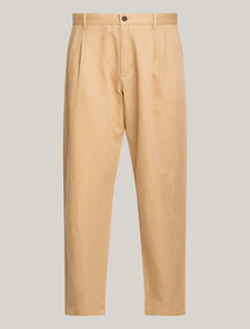 這款卡其褲由亞麻和棉製成,具有時尚的直筒廓形,可搭配您的商務休閒單品。