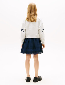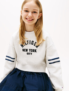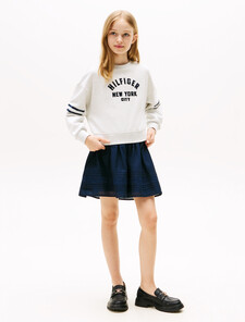 這款學院風衛衣以柔軟棉質混紡製作,搭配垂肩設計,並飾有學院風標誌貼花。