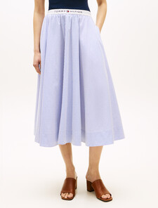 This pure cotton midi skirt, featuring a timeless A-line silhouette, is brought into modernity with a sporty elasticated waistband showcasing logo detailing.