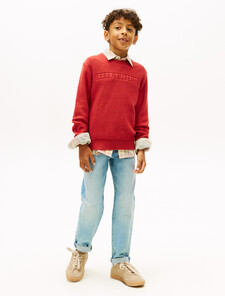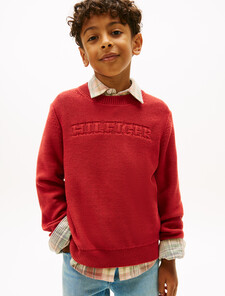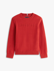 胸前的Hilfiger Monotype壓花標誌為這款圓領毛衣增添個性,是日常時尚穿搭之選。