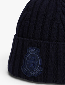 這款羅紋針織羊毛帽的外翻帽邊飾有TH徽章,讓你在寒冬保持溫暖而不失型格。
